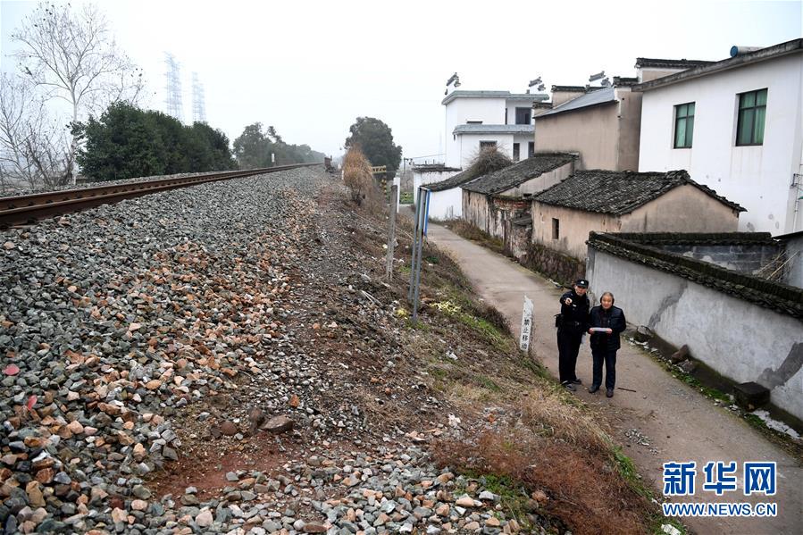 1月16日,汪茂才向鐵路沿線村民宣傳鐵路安全知識。 今年52歲的汪茂才是合肥鐵路公安處黃山站派出所歙縣警務室的一名線路民警,他所在的警務室負責皖南山區(qū)皖贛鐵路線約80公里范圍內的線路安全。從警30年來,線路巡查、鐵路安全知識宣傳等是汪茂才的日常工作。多年來的徒步巡線,讓汪茂才練就了一雙快腿,十公里的路,汪茂才兩個小時就能走完。 汪茂才負責的鐵路沿線周邊村莊較多,很多房子都是沿鐵路線而建,有些村民為了圖方便,違規(guī)穿越鐵路線。加強對鐵路沿線居民的安全宣傳教育,成為汪茂才的一項重要工作,沿線村民的安全意識也越來越高。 對汪茂才這樣的線路民警來說,大多數(shù)時候都是“獨行俠”,“當線路民警就要耐得住寂寞,守得住孤獨,與大山為伴,與線路為友,盡己所能,為鐵路安全運行保駕護航?!蓖裘耪f。 新華社記者劉軍喜攝