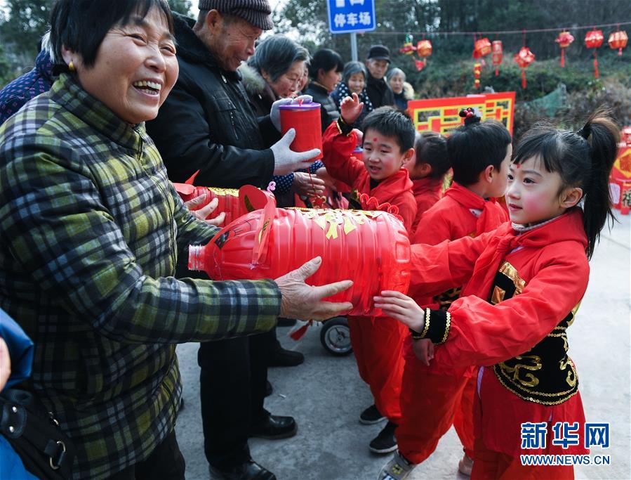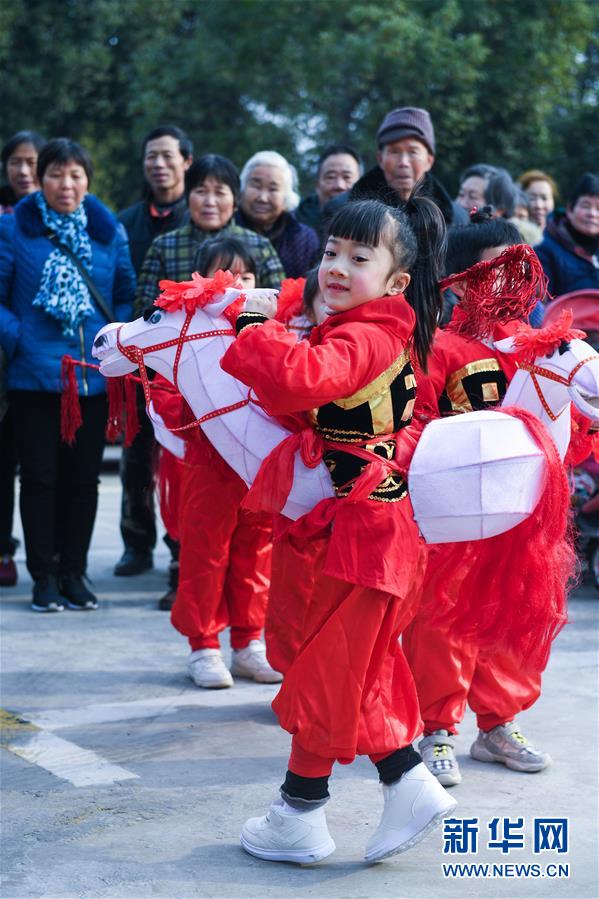 1月16日,新塘村村民觀看傳統(tǒng)非遺項目——下箬馬燈。下箬馬燈是發(fā)源于長興縣的民間舞蹈,距今已有1000多年歷史。 臨近春節(jié),浙江省長興縣開發(fā)區(qū)中心幼兒園的老師和孩子們來到長興縣太湖街道下屬的新塘村,為村民表演文藝節(jié)目,用喜慶的傳統(tǒng)舞蹈營造節(jié)日氣氛。另外孩子們還用紙盒、瓶子、彩色包裝紙等廢舊物品制作了環(huán)?;?,送給村民,倡導(dǎo)低碳環(huán)保的節(jié)日新風(fēng)。 新華社記者 徐昱 攝