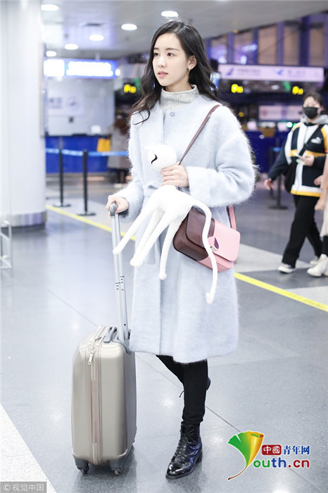 2019年1月27日,北京,陳都靈現(xiàn)身機(jī)場。手里拿著可愛白色公仔的她深夜現(xiàn)身機(jī)場,皮膚狀態(tài)仍非常好,羨煞旁人。
