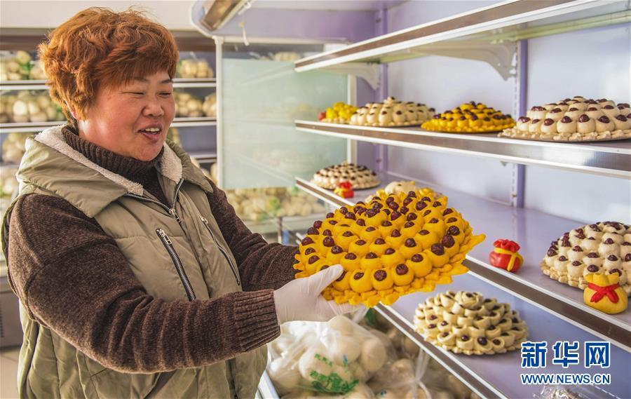 1月25日,在河北棗強(qiáng)一家食品公司,工人將新鮮花糕出爐。 春節(jié)臨近,河北省棗強(qiáng)縣面食加工廠的面點(diǎn)師傅們忙著趕制花糕、花饃等傳統(tǒng)面食,以供應(yīng)節(jié)日市場(chǎng)。當(dāng)?shù)赜羞^(guò)年蒸花糕、做花饃的習(xí)俗,寓意步步登高,生活一年比一年好。 新華社記者 李曉果攝