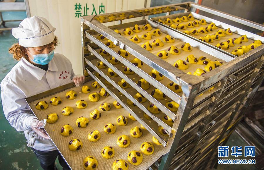 1月25日,在河北棗強(qiáng)一家食品公司,工人將新鮮花糕出爐。 春節(jié)臨近,河北省棗強(qiáng)縣面食加工廠的面點(diǎn)師傅們忙著趕制花糕、花饃等傳統(tǒng)面食,以供應(yīng)節(jié)日市場(chǎng)。當(dāng)?shù)赜羞^(guò)年蒸花糕、做花饃的習(xí)俗,寓意步步登高,生活一年比一年好。 新華社記者 李曉果攝