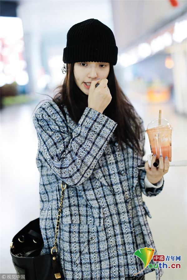 2019年2月10日,林允現(xiàn)身機(jī)場(chǎng),從上海飛往北京。她穿格子大衣氣質(zhì)非凡,不懼素顏嘟嘴賣萌大方任拍,捧果汁回眸揮手告別粉絲,依依不舍。