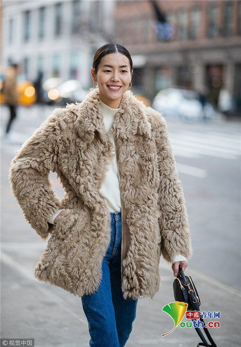 當(dāng)?shù)貢r(shí)間2019年2月10日,美國(guó)紐約,2019秋冬紐約時(shí)裝周:劉雯現(xiàn)身街頭。她身穿毛絨外套帥氣養(yǎng)眼,走在街頭回眸一笑氣質(zhì)迷人。