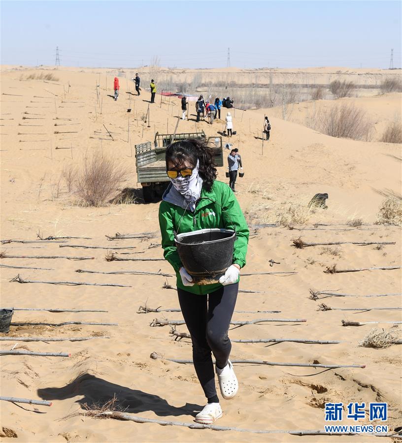 3月31日,一名青年志愿者正在取水澆灌。 當(dāng)日,200余名中韓兩國(guó)青年志愿者來(lái)到內(nèi)蒙古自治區(qū)達(dá)拉特旗庫(kù)布其沙漠種樹(shù)。2006年起,中國(guó)國(guó)際青年交流中心與韓國(guó)韓中文化青少年協(xié)會(huì)組織兩國(guó)青年志愿者在庫(kù)布其沙漠植樹(shù),參與防沙固沙項(xiàng)目。截至目前已植樹(shù)850多萬(wàn)株,造林3萬(wàn)多畝。 新華社記者 劉磊 攝