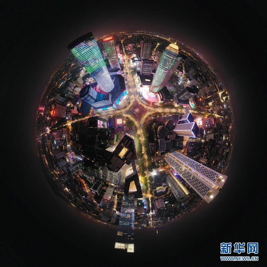 這是4月17日無(wú)人機(jī)拍攝的南京新街口夜景全景圖。 新華社記者 李博 攝