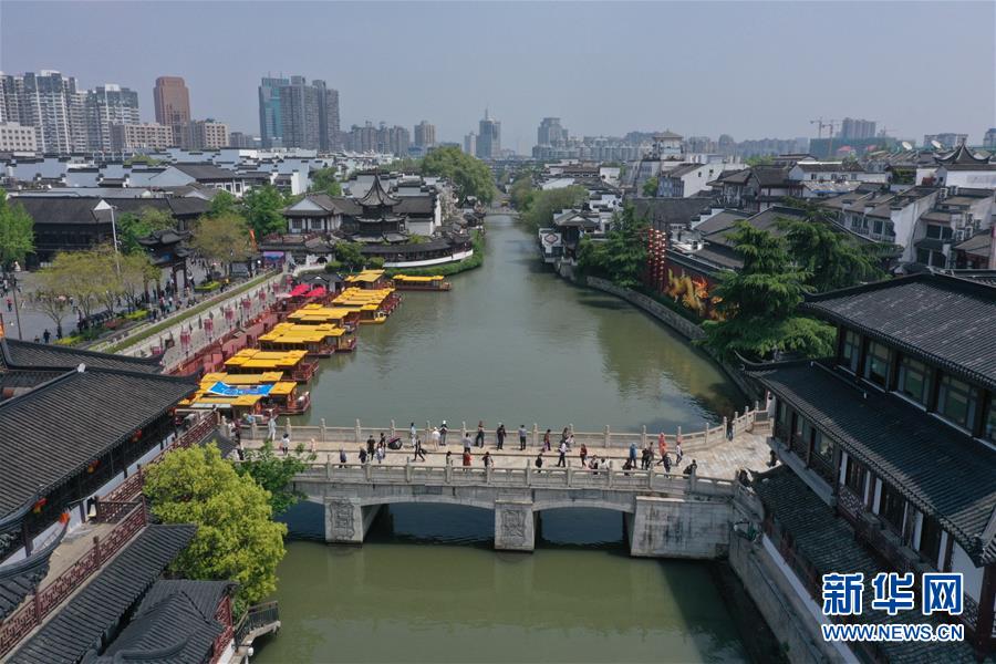 這是4月17日無(wú)人機(jī)拍攝的南京夫子廟景區(qū)。 新華社記者 李博 攝