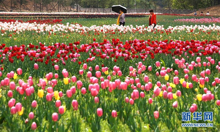 4月14日,游客在位于湖北省十堰市茅箭區(qū)的秦巴生態(tài)植物園內(nèi)賞花游覽。近日,位于湖北省十堰市茅箭區(qū)的秦巴生態(tài)植物園內(nèi),200萬株郁金香競相開放,吸引游客前來賞花游覽。 新華社記者 程敏 攝