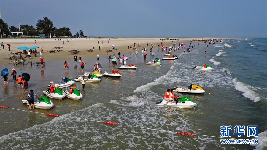 這是游客在北海銀灘游玩(4月18日無人機拍攝)。 北部灣畔南端的江山半島,76公里海岸線上,昔日沿岸漁村如今“長”出20多個景區(qū)。每逢節(jié)假日,四面八方的游客將這里堆得人山人海。 近年來,北部灣國際旅游度假區(qū)正成為廣西旅游業(yè)的一顆耀眼明珠。在綠色之海、開放之海理念的指導(dǎo)下,發(fā)展的東風(fēng)掀開這片南疆海域 “面紗”,昔日漁港正變?yōu)闉I海旅游勝地。 新華社記者張愛林?jǐn)z
