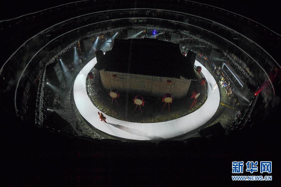 4月27日,模特在位于福建省南靖縣的土樓裕昌樓展示服飾。 當日,土樓光語國際時尚大秀在福建省南靖縣的土樓裕昌樓內舉行。這場融匯文化、時尚與旅游元素的大秀,通過傳統(tǒng)與時尚的有機融合,展現(xiàn)南靖土樓及文化的魅力和風采。 新華社記者魏培全攝