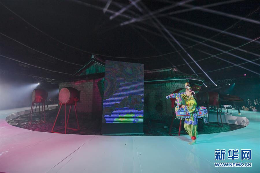 4月27日,表演結束后,模特在向觀眾致意。 當日,土樓光語國際時尚大秀在福建省南靖縣的土樓裕昌樓內舉行。這場融匯文化、時尚與旅游元素的大秀,通過傳統(tǒng)與時尚的有機融合,展現(xiàn)南靖土樓及文化的魅力和風采。 新華社記者魏培全攝