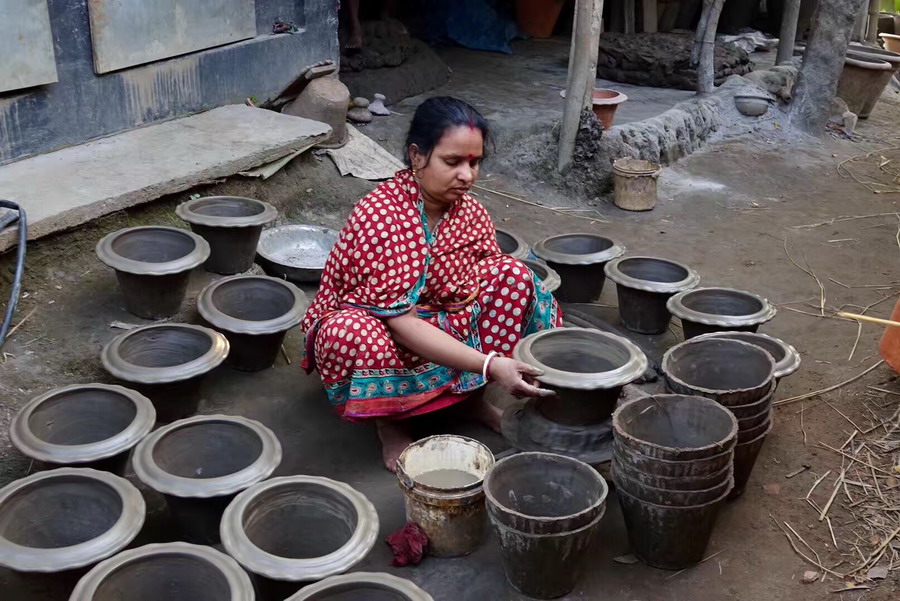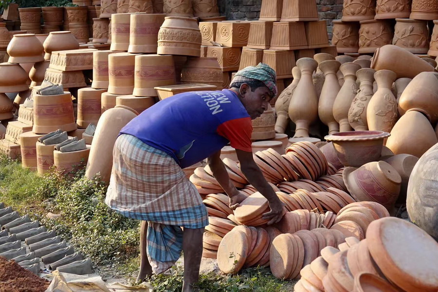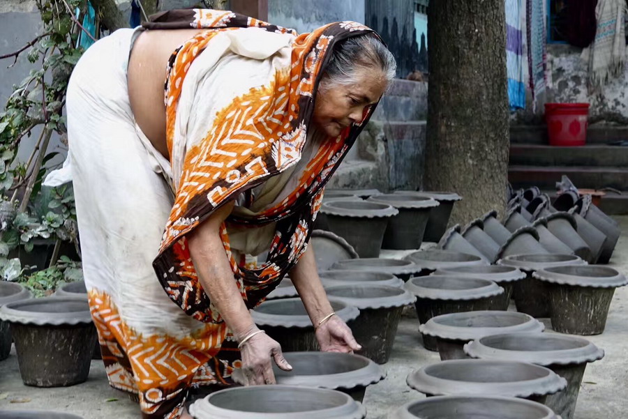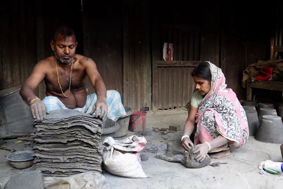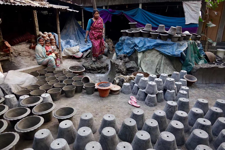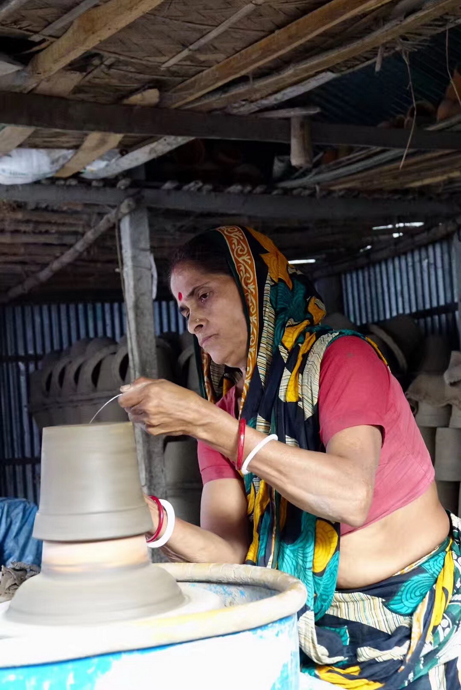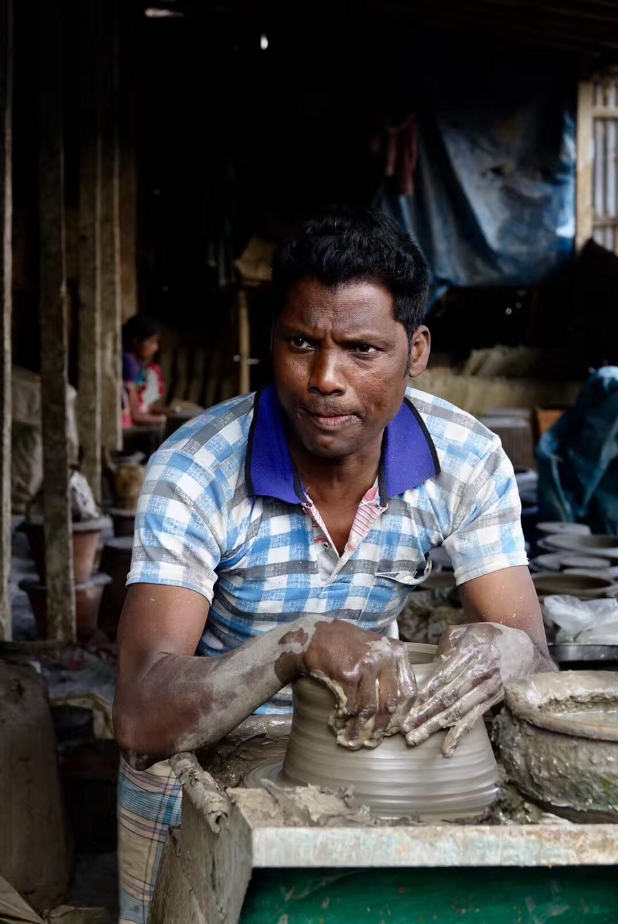 達卡遠郊區(qū)一個印度教徒聚居的村莊,幾乎家家戶戶都開辦制陶作坊,以傳統(tǒng)工藝制作陶盆、陶罐、陶盤和建筑裝飾陶器,遠銷孟加拉國內(nèi)各地。李仁奇 攝