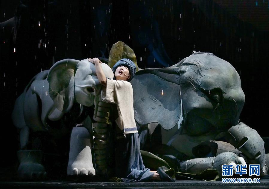 5月15日在上海美琪大戲院拍攝的新版大型人偶舞臺(tái)劇《最后一頭戰(zhàn)象》劇照。 當(dāng)日,作為第12屆中國(guó)藝術(shù)節(jié)的參演劇目,大型人偶舞臺(tái)劇《最后一頭戰(zhàn)象》在經(jīng)過4次硬件技術(shù)升級(jí)和故事修改后亮相上海美琪大戲院。 新華社記者 任瓏 攝