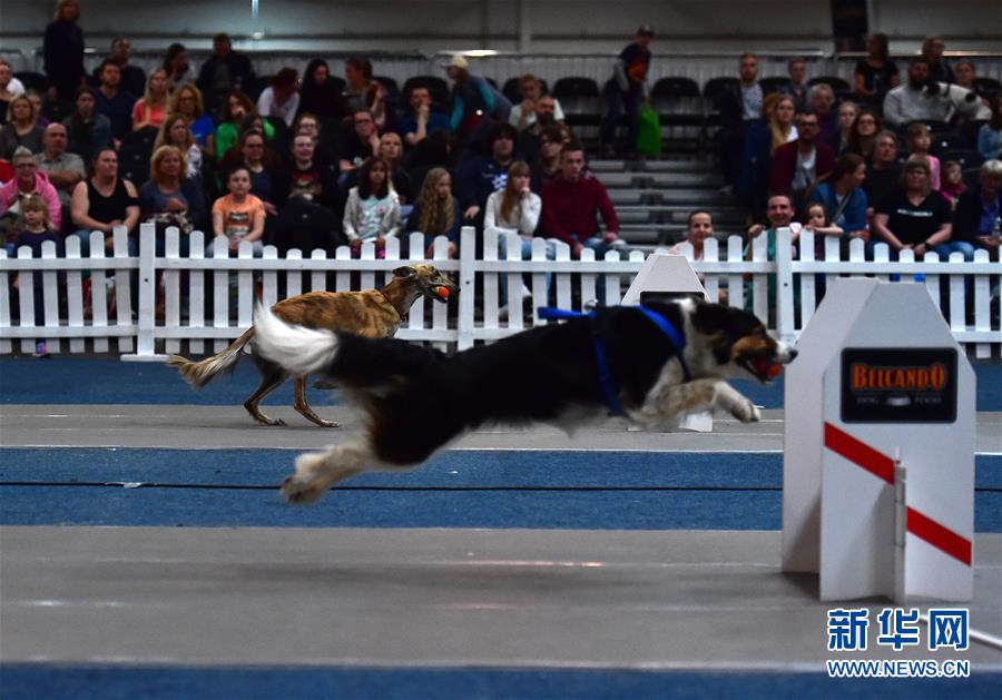 5月19日,在德國(guó)多特蒙德舉行的寵物展上,兩只狗狗參加速度競(jìng)賽。 為期三天的德國(guó)多特蒙德“狗和貓”寵物展19日落幕。寵物展期間,人們帶著自己的“萌寵”來到會(huì)場(chǎng),參與寵物跳水、舞蹈、選美等趣味比賽,并與其他寵物愛好者及展商交流互動(dòng)。 新華社記者逯陽攝