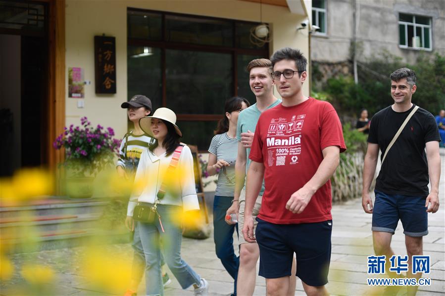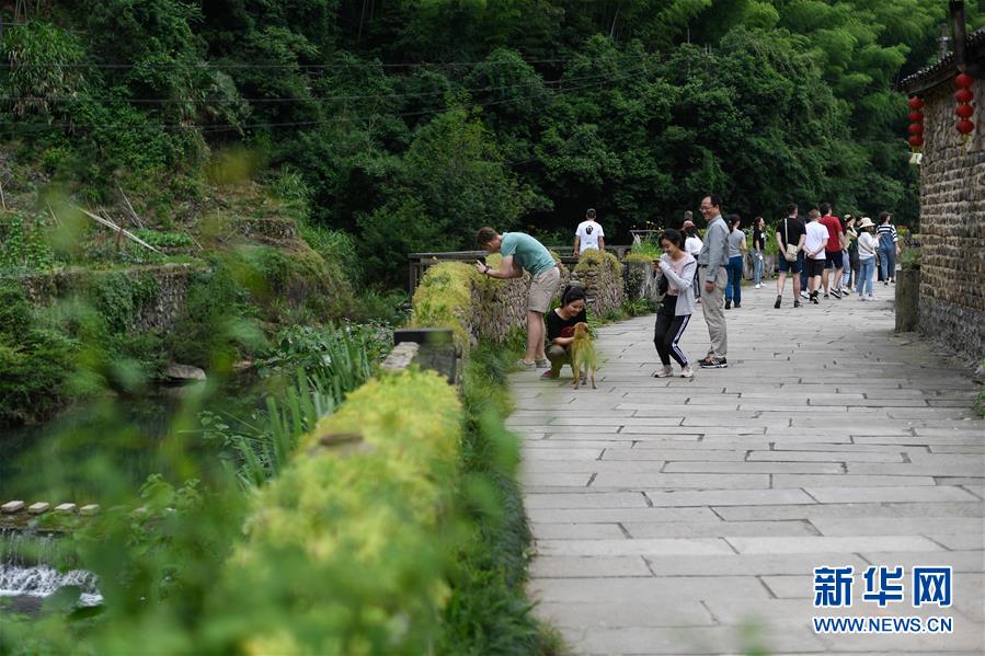 中外游客在石舍村游覽(5月25日攝)。 石舍村是浙江省桐廬縣富春江鄉(xiāng)村慢生活體驗區(qū)中的三個村落之一,位置偏僻,依溪而居,風景秀美。近年來,石舍村結合古建筑保護工作,在清潔、美化村莊的基礎上,對一些廢棄古建筑進行修繕,引入咖啡館、民宿等文化創(chuàng)意類項目,優(yōu)良的生態(tài)環(huán)境和濃郁的文化氛圍吸引大批游客前來體驗,小山村走上了一條發(fā)展美麗經(jīng)濟之路。2018年,石舍村接待游客10萬8千余人次,旅游經(jīng)營凈收入1260余萬元。 新華社記者 黃宗治 攝