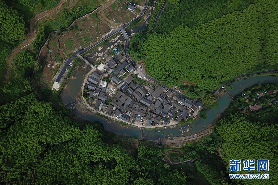 5月26日無人機拍攝的富春江鎮(zhèn)石舍村。村莊依山傍水,風景秀美。 石舍村是浙江省桐廬縣富春江鄉(xiāng)村慢生活體驗區(qū)中的三個村落之一,位置偏僻,依溪而居,風景秀美。近年來,石舍村結合古建筑保護工作,在清潔、美化村莊的基礎上,對一些廢棄古建筑進行修繕,引入咖啡館、民宿等文化創(chuàng)意類項目,優(yōu)良的生態(tài)環(huán)境和濃郁的文化氛圍吸引大批游客前來體驗,小山村走上了一條發(fā)展美麗經(jīng)濟之路。2018年,石舍村接待游客10萬8千余人次,旅游經(jīng)營凈收入1260余萬元。 新華社記者 黃宗治 攝