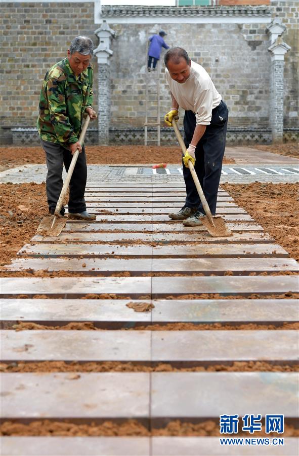 4月28日,在江西省南昌市南昌縣岡上鎮(zhèn)省級文物保護單位“吳氏家廟”內(nèi),搶修工程隊的工人在鋪磚。近年來,江西省南昌市南昌縣推動古村落保護工作。2019年,首批搶修工程隊進駐南昌縣岡上鎮(zhèn),對當?shù)刂氖〖壩奈锉Wo單位“吳氏家廟”及縣級文物保護單位“吳培荊堂古建筑群”進行搶救性維修。同時當?shù)卣€制定文旅規(guī)劃,讓文物保護與觀光旅游相結合,推動鄉(xiāng)村振興。 新華社記者 彭昭之 攝