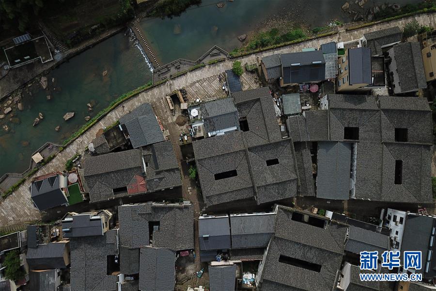 5月26日無人機拍攝的富春江鎮(zhèn)石舍村的古建筑群。 石舍村是浙江省桐廬縣富春江鄉(xiāng)村慢生活體驗區(qū)中的三個村落之一,位置偏僻,依溪而居,風景秀美。近年來,石舍村結合古建筑保護工作,在清潔、美化村莊的基礎上,對一些廢棄古建筑進行修繕,引入咖啡館、民宿等文化創(chuàng)意類項目,優(yōu)良的生態(tài)環(huán)境和濃郁的文化氛圍吸引大批游客前來體驗,小山村走上了一條發(fā)展美麗經(jīng)濟之路。2018年,石舍村接待游客10萬8千余人次,旅游經(jīng)營凈收入1260余萬元。 新華社記者 黃宗治 攝
