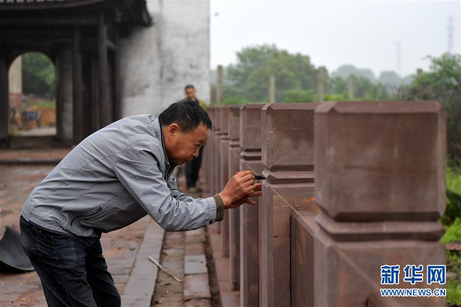 4月28日,在江西省南昌市南昌縣岡上鎮(zhèn)省級文物保護單位“吳氏家廟”內(nèi),搶修工程隊的工人在打磚刻石。近年來,江西省南昌市南昌縣推動古村落保護工作。2019年,首批搶修工程隊進駐南昌縣岡上鎮(zhèn),對當?shù)刂氖〖壩奈锉Wo單位“吳氏家廟”及縣級文物保護單位“吳培荊堂古建筑群”進行搶救性維修。同時當?shù)卣€制定文旅規(guī)劃,讓文物保護與觀光旅游相結合,推動鄉(xiāng)村振興。 新華社記者 彭昭之 攝