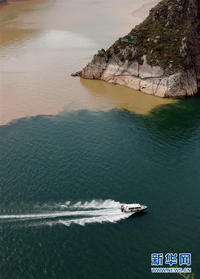 6月2日,在甘肅省臨夏回族自治州永靖縣劉家峽水庫(kù),一艘快艇在洮河和黃河的匯合水域行駛。
