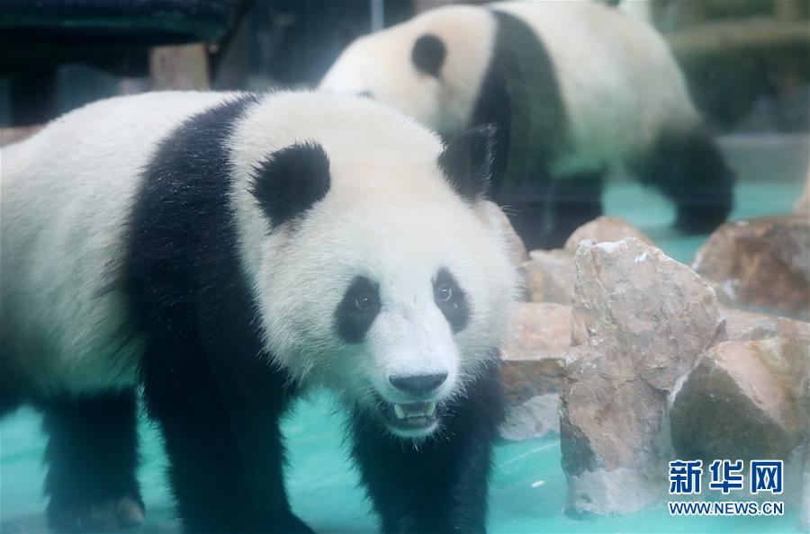 6月18日,大熊貓“和風(fēng)”(前)透過(guò)玻璃幕墻向外張望。 當(dāng)日,來(lái)自四川的大熊貓兄弟“和風(fēng)”與“星光”飛抵上海,正式開(kāi)始了在上海動(dòng)物園為期三年的生活。為迎接這對(duì)“風(fēng)光兄弟”,上海動(dòng)物園將原有的大熊貓館擴(kuò)建并裝修一新,空調(diào)、水池、游樂(lè)場(chǎng)以及竹葉儲(chǔ)存間等配置齊全。 新華社記者 方喆 攝