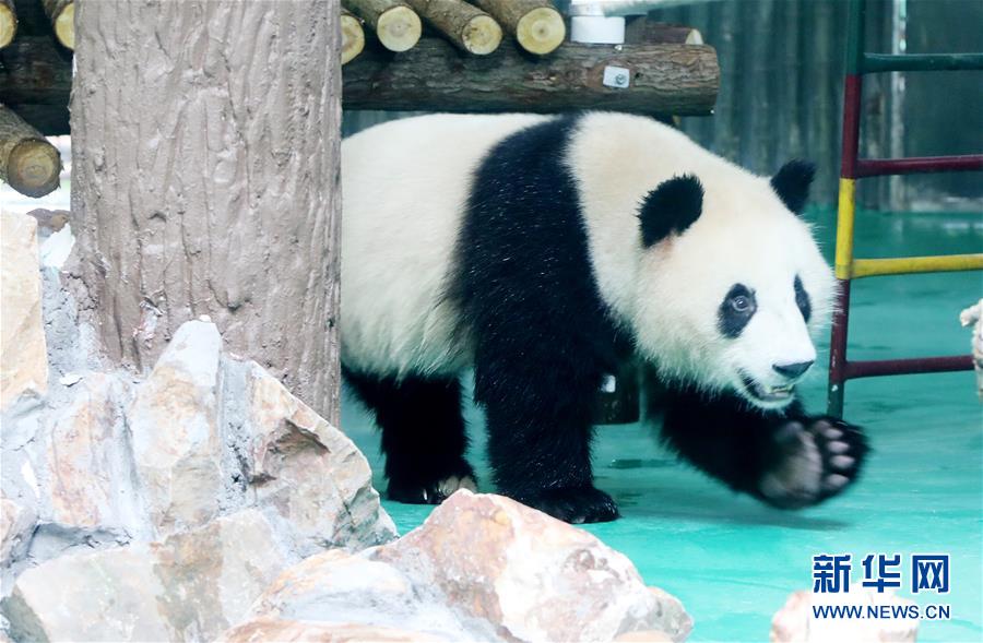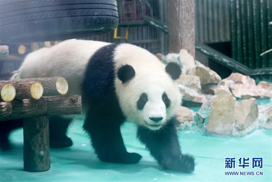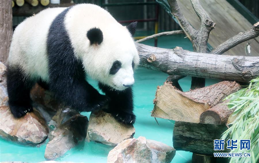 6月18日,大熊貓“和風(fēng)”在裝修一新的大熊貓館內(nèi)散步。 當(dāng)日,來(lái)自四川的大熊貓兄弟“和風(fēng)”與“星光”飛抵上海,正式開(kāi)始了在上海動(dòng)物園為期三年的生活。為迎接這對(duì)“風(fēng)光兄弟”,上海動(dòng)物園將原有的大熊貓館擴(kuò)建并裝修一新,空調(diào)、水池、游樂(lè)場(chǎng)以及竹葉儲(chǔ)存間等配置齊全。 新華社記者 方喆 攝