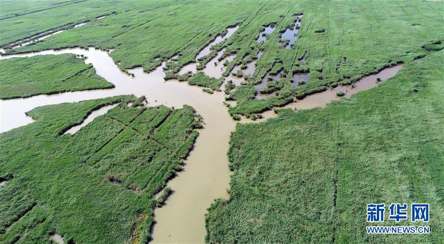 這是天津市寧河區(qū)七里海濕地局部景觀(6月22日無人機(jī)拍攝)。新華社記者 岳月偉 攝
