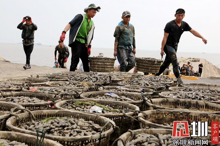 時下正是沿海地區(qū)海蟶收獲的季節(jié),在江蘇連云港海邊的灘涂上,漁民們將收獲的海蟶裝箱外運,一片忙碌。