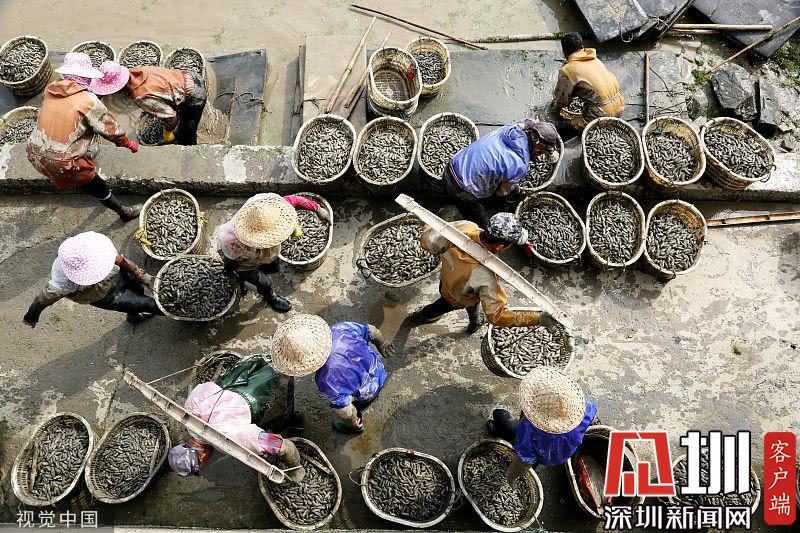 浙江臺州三門縣花橋鎮(zhèn)柵下村的文化禮堂前,村民們冒雨和商販交易蟶苗,現(xiàn)場一片繁忙。