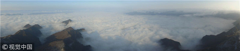 2019年3月3日,陜西商洛,位于鎮(zhèn)安縣的塔云山景區(qū)云海翻騰,宛如仙境。袁景智/視覺(jué)中國(guó) 編輯/陳進(jìn)