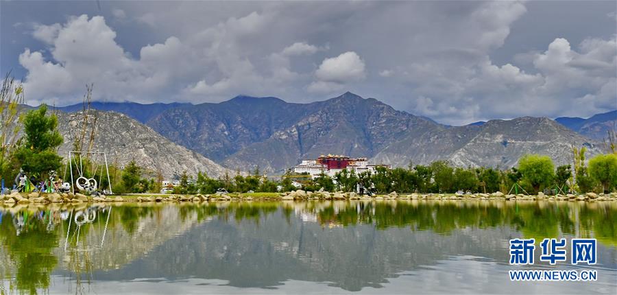 在南山公園湖畔拍攝的布達拉宮風光(7月30日攝)。新華社記者 張汝鋒 攝