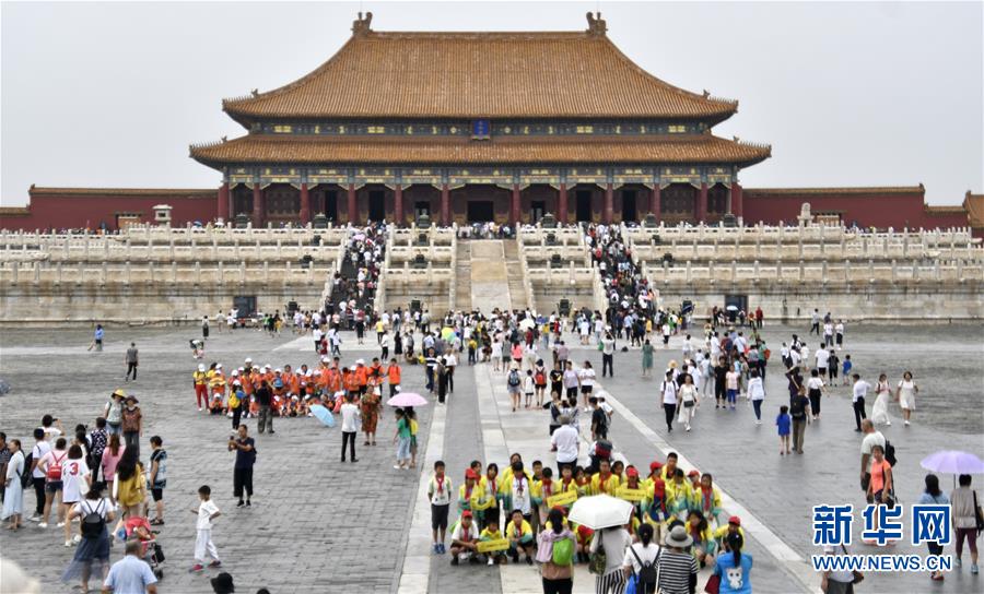 8月3日,游客在故宮參觀。進入暑期以來,北京故宮博物院迎來游覽高峰。故宮博物院采取每日游客限流、熱點景區(qū)導流、供水和醫(yī)療保障等措施,確保游客安全。新華社記者李欣攝