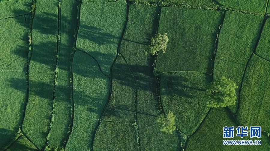 這是8月4日無人機拍攝的安徽黟縣宏村風(fēng)景區(qū)附近的農(nóng)田晨景。新華社記者 張端 攝
