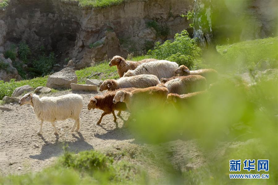 6月6日,轉(zhuǎn)場(chǎng)羊群行走在牧道上。新華社記者 丁磊 攝