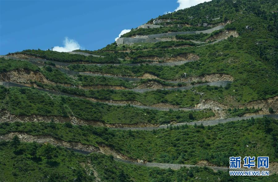 2015年“4·25”特大地震發(fā)生后新修筑的通往乃村的公路(8月26日攝)。新華社記者 多吉占堆 攝