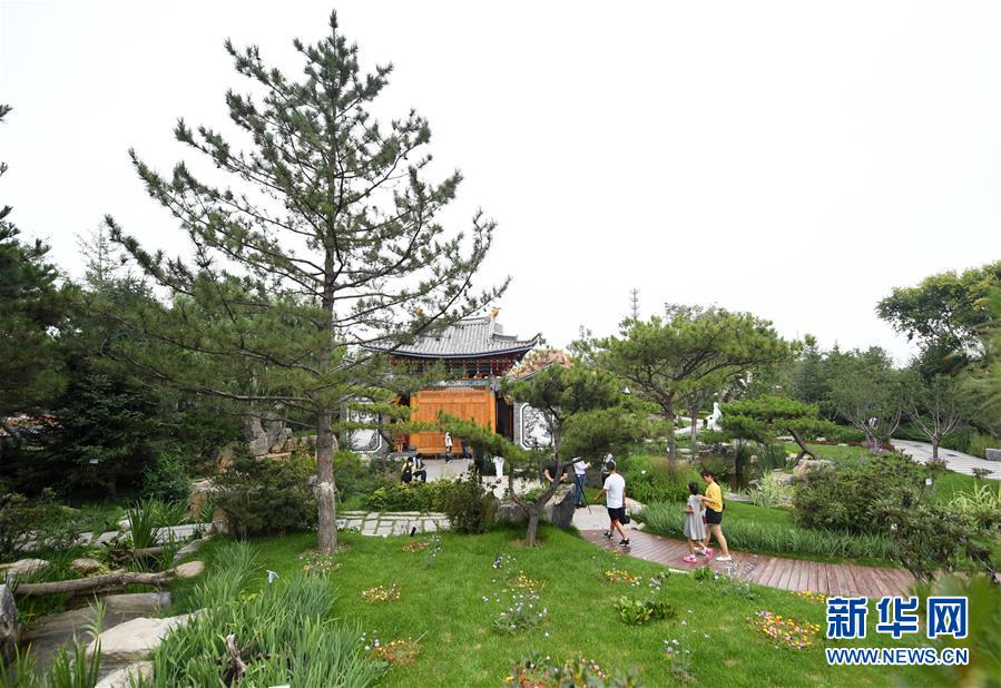 8月25日,游客在北京世園會甘肅園參觀。新華社記者 張晨霖 攝