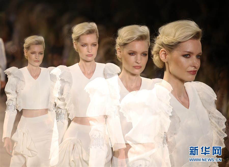 9月7日,在美國紐約,模特展示Taoray Wang品牌時(shí)裝(多重曝光拍攝)。 新華社記者 秦朗 攝