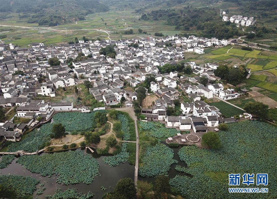 這是無(wú)人機(jī)拍攝的呈坎村(8月28日攝)。新華社記者劉軍喜攝