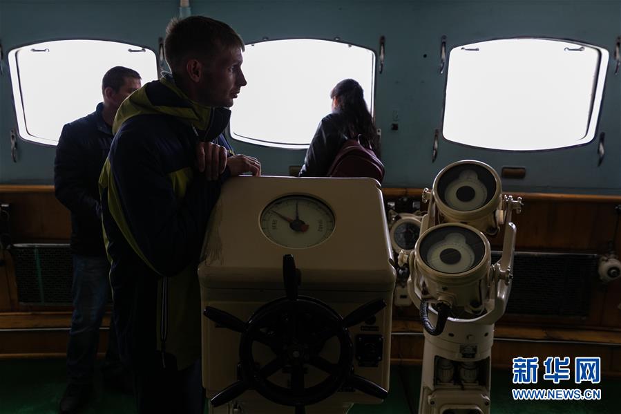 9月14日,在俄羅斯摩爾曼斯克,人們?cè)诤藙?dòng)力破冰船“列寧”號(hào)內(nèi)部參觀。 新華社記者 白雪騏 攝