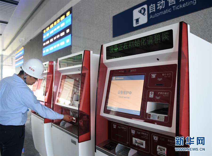 9月18日,工作人員對京雄城際北京大興站內(nèi)的自動售票機(jī)進(jìn)行檢查。新華社記者張晨霖攝