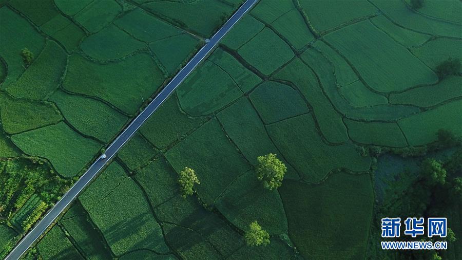 這是8月4日無人機拍攝的安徽黟縣宏村風景區(qū)附近的農(nóng)田。新華社記者張端攝
