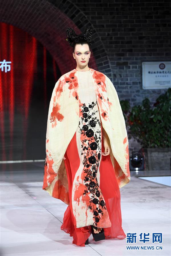 9月25日,模特在榮昌夏布·張義超非遺時(shí)尚大秀上展示時(shí)裝設(shè)計(jì)師張義超的時(shí)裝作品。 新華社記者 唐奕 攝