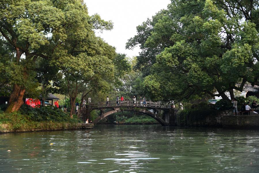 10月3日,游客在西溪國家濕地公園漫步休閑。 當(dāng)日是國慶假期第三天,大批游客來到位于杭州的西溪國家濕地公園游玩,在江南詩意的環(huán)境中休閑度假。 新華社記者 黃宗治 攝