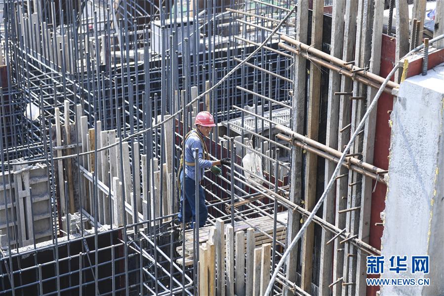 10月6日,工人在大藤峽水利樞紐工程工地上調整鋼筋安裝位置。新華社記者曹祎銘攝