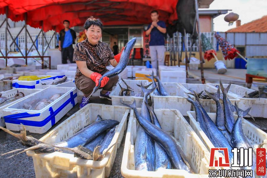 一筐筐的刀魚、鯧魚、鲅魚,很快被運輸?shù)脚R近的興海門海鮮批發(fā)市場,市場里人頭攢動、熙熙攘攘,就像趕年集一般,一派購銷兩旺的景象。