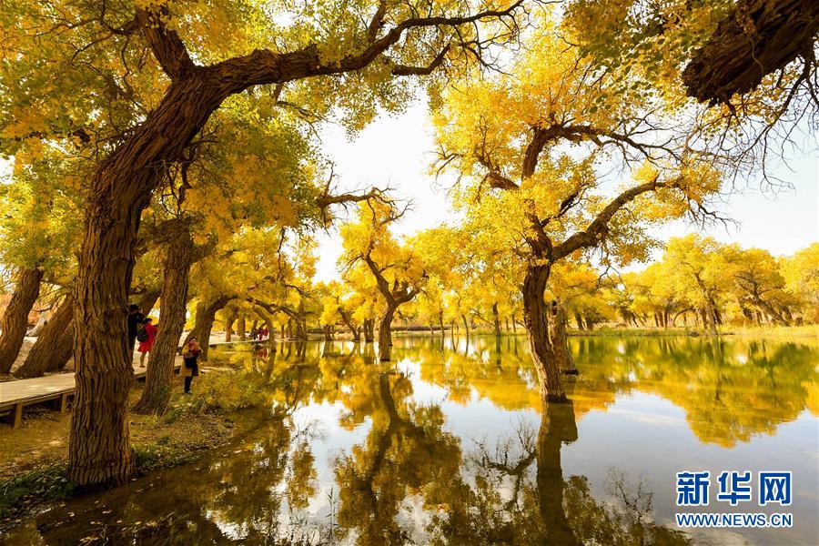 10月16日,這是內(nèi)蒙古阿拉善盟額濟(jì)納旗境內(nèi)的胡楊林。金秋時節(jié),位于內(nèi)蒙古阿拉善盟額濟(jì)納旗境內(nèi)的胡楊林披上了金黃色的外衣,在陽光的照射下呈現(xiàn)絢麗奪目的色彩,成為沙漠深處的一抹亮色。新華社記者彭源攝