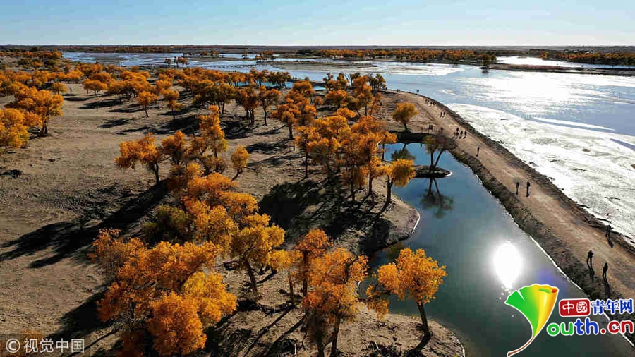 航拍內蒙古額濟納自治旗的胡楊林。