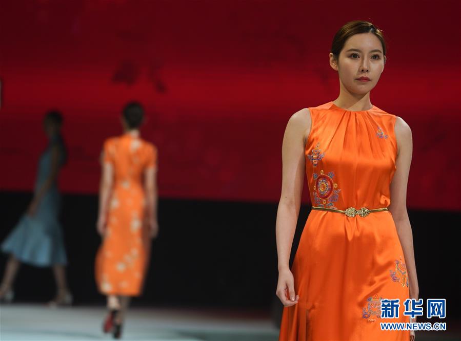 10月16日,“愿·緣·圓”上久楷婚慶主題秀在江蘇省蘇州市吳江區(qū)盛澤鎮(zhèn)舉行。主題秀上展示大量帶有龍鳳、牡丹、海棠、彩蝶等中國(guó)傳統(tǒng)文化元素的宋錦中式婚慶禮服。 新華社記者 季春鵬 攝