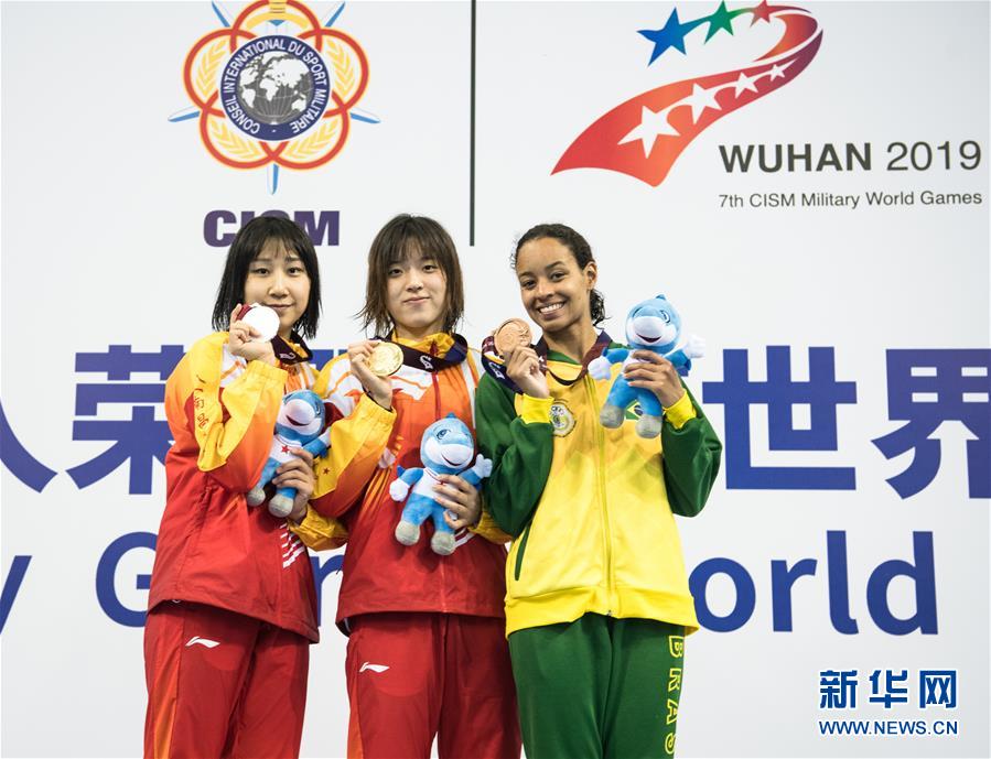 10月20日,冠軍中國隊選手吳慧敏(中)、亞軍中國隊選手包雪怡(左)在頒獎儀式上。新華社記者肖藝九攝