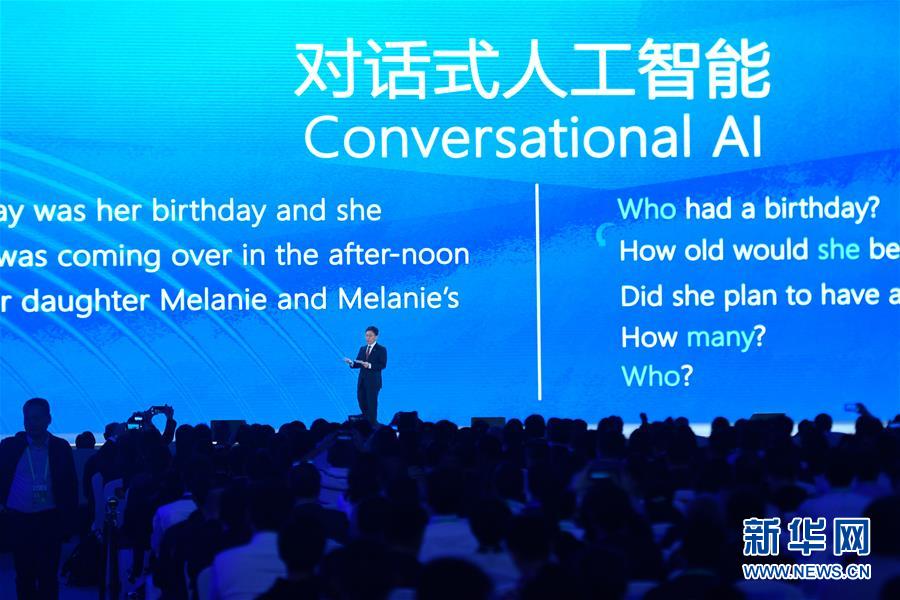 10月20日,微軟公司代表在介紹“統(tǒng)一自然語言預(yù)訓(xùn)練模型與機器閱讀理解”。新華社記者 黃宗治 攝