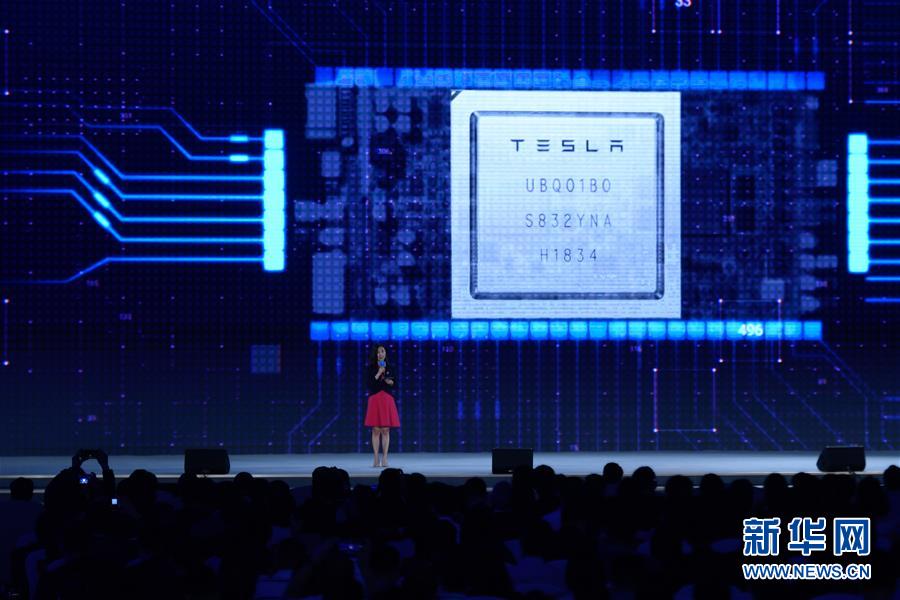 10月20日,特斯拉公司代表在介紹“特斯拉完全自動駕駛芯片”。新華社記者 黃宗治 攝